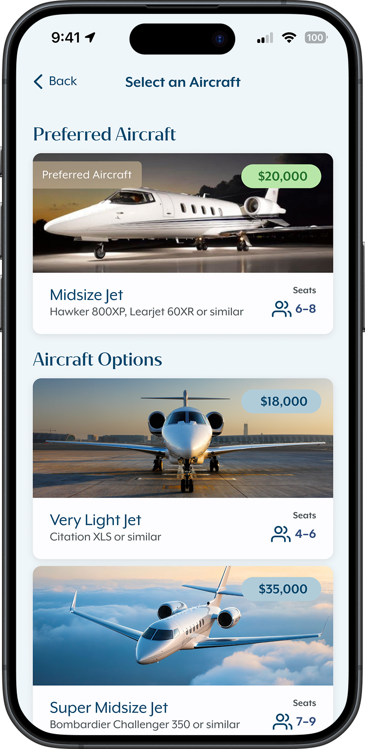 Browse real-time aircraft availability and reserve flights instantly with no hidden fees.