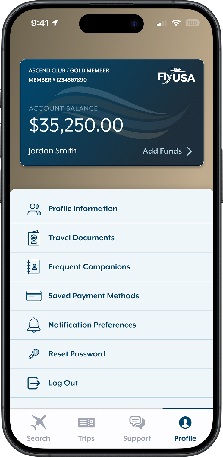 Download the FlyUSA app and take control of your travel experience—wherever you are.